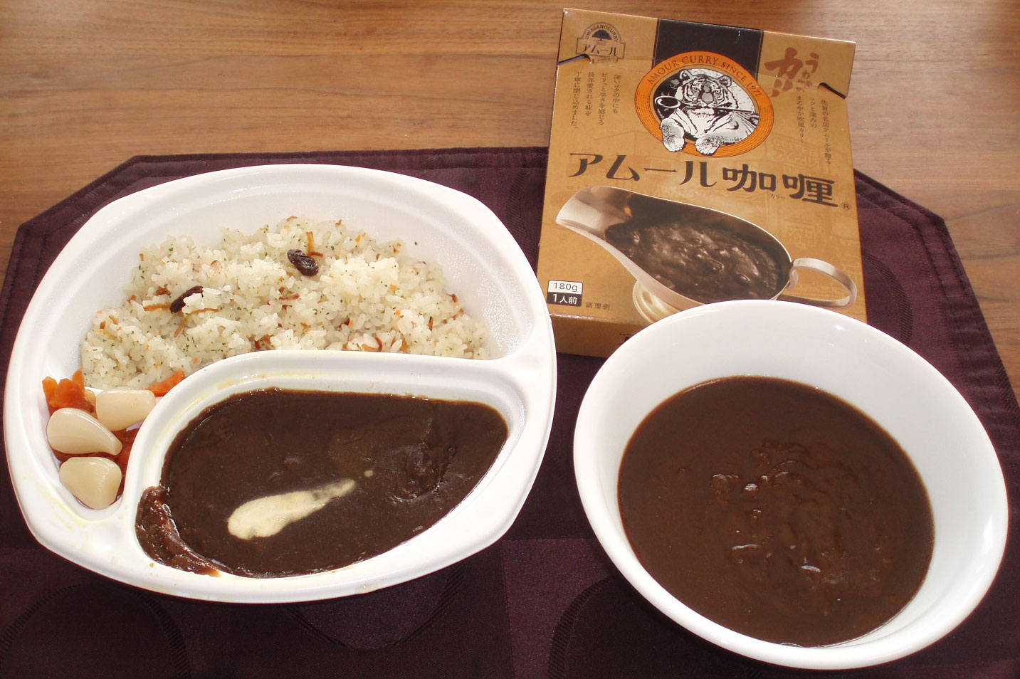 お店のテイクアウトとレトルトを食べ比べてみました。テイクアウトは2cm角程度の肉の塊が三つ入っていましたが、レトルトはほぼルーのみでお肉は確認できませんでした。にんじん/玉ねぎ/ジャガイモなどはテイクアウト/レトルトともに確認出来なかったので、煮崩れてしまったと思われます。カリーの色合いはほぼ同じに見えました。私の味覚では味もほぼ同じでした。家族の味覚ではレトルトの方が少し甘さがあると言っていました。なお2025年11月7日から店内飲食/テイクアウトともに値上げになっていてテイクアウトのビーフカリー弁当950円税込でした。2025年11月