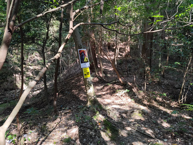 10:50 レスキューポイントの黄色い17「病気やケガで動けなくなったらこの番号を連絡してください」と書かれている |